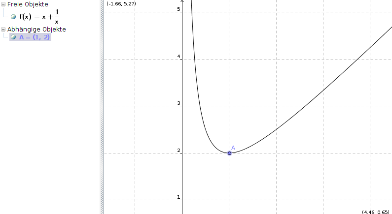 f''(1) = 2 > 0, also liegt an der Stelle x0 = 2 ein lokales Minimum vor.