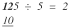 Da dies nicht funktioniert, muss man die nächste Ziffer auch noch mitdividieren (hier die 2 --> man dividiert 12 / 5):