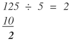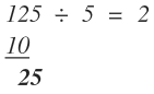 Und nun wird die nächste Ziffer des Dividenden heruntergeholt (die 5) und an den Rest angehängt: