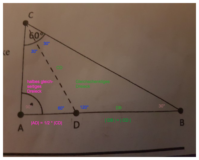 ∠CBD = 30° wegen Winkelsumme im ∇ABC.