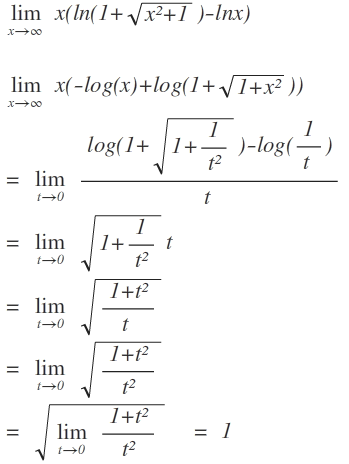 Außerdem: \( \lim_{x \to \infty} x = \infty \) und \(  \lim_{x \to \infty} ln\left( \frac{1}{x}+ \sqrt{1+\frac{1}{x^2}} \right) = ln(1)=0\)