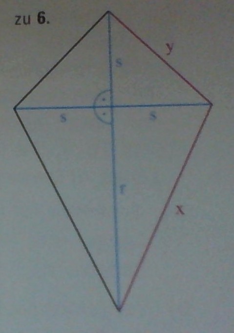 Aufgabe:ein drachen hat die folgenden abmessungen. Berechne die seitenlängen x und y.